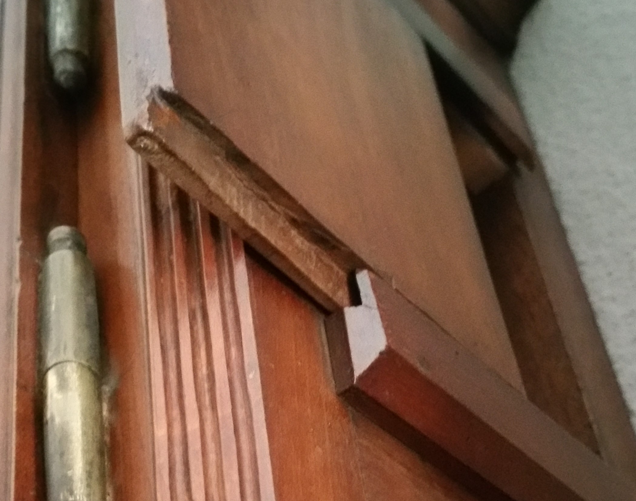 De smalle kast is van kersenhout en slechts cm breed. aan de zijkant zijn twee schuifluikjes.