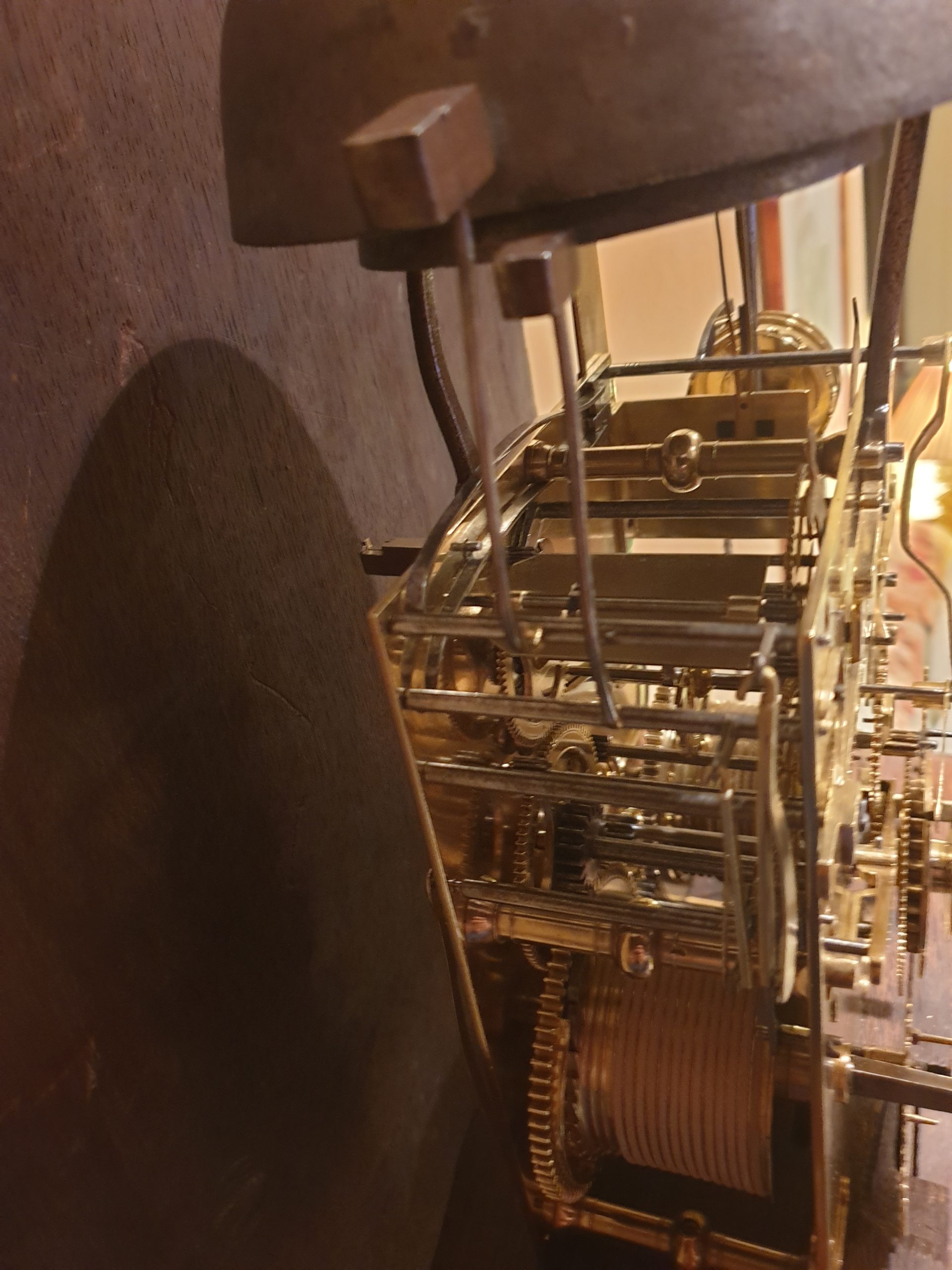 De wijzerplaat heeft vier zeer fraaie hoekstukken in de vorm van de “Vier Seizoenen en geeft naast de tijd ook de maan, maand, de dag en datum weer. en is gesigneerd: Pieter Klock Amsterdam.